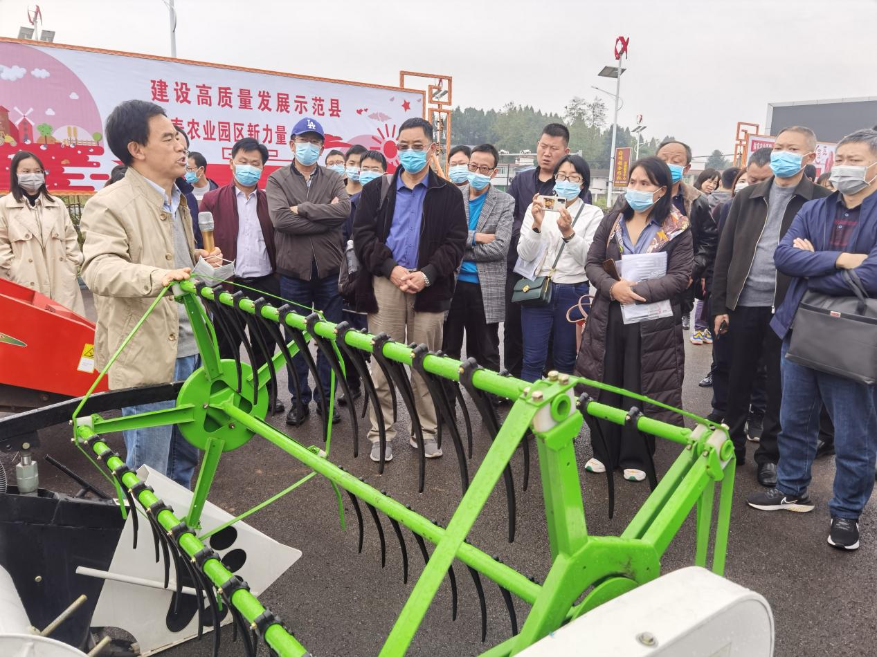 上午,全体参会代表来到仁寿县现代农业产业园区,国家大豆产业技术体系岗位科学家、四川省大豆重大技术协同推广计划试点项目技术首席、农学院雍太文教授主持召开了位于仁寿县的大豆带状复合种植现场观摩会。在永利yl23411集团官网博士工作站内,代表们现场观摩了玉米大豆带状复合种植施肥播种一体机、多功能施药机、联合收获机等农机具,玉米大豆带状复合种植首席专家杨文钰教授与农学院王小春教授就播种机与收获机的研发、机具性能及使用情况进行了介绍,机电学院吕小荣教授就最新研发的大豆联合收获机参数特点及智能化监控展望与参会代表进行了交流,河南农业大学李赫教授介绍了多功能施药机的工作原理和应用前景。