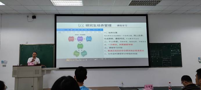 王际睿在讲话中首先对新生表示了热烈的欢迎,并介绍了农学院115年的发展历史,同时寄语新生“肩负国家粮食安全重任,彰显强农兴农使命担当,服务于国家重大需求,在新时代、新征程做出新的更大贡献!”。杨峰介绍了学院和学校的实验平台与基地的情况并开展了实验室安全专题教育。王强从研究生管理体系、研究生培养方案、研究生奖助学金、培养毕业与授位要求、研究生培养质量、研究生学生组织六个方面对研究生培养环节作了解读。