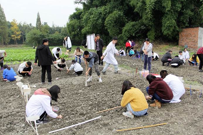 作物生产实践是农学专业的必修课程和特色课程,旨在通过学生团队独立完成作物的种植设计和田间试验,注重将课堂理论教学与实践教学、生产应用相结合,从耕、种、管、收、销等作物生产全链条设计和实施,提高农学学子科学研究能力和农业生产实践能力。在为期一年的实践中,同学们先后开展了麦类作物密度试验,蔬菜小麦间作,以及小麦玉米套作试验。
