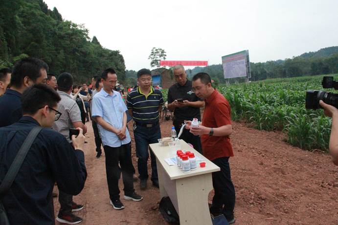 上午9点,全体参会代表来到安居区奉光荣家庭农场,观摩了“玉米-大豆带状复合种植”农资、农用机具产品展及大豆机播现场。全省大豆重大技术协同推广计划技术首席、永利yl23411集团官网农学院雍太文教授主持现场会,并邀请南京高正农用化工有限公司现场演示了大豆专用种衣剂拌种技术,四川美丰农资化工有限责任公司介绍了与永利yl23411集团官网联合研发的玉米大豆带状复合种植专用缓释肥的增产节肥原理及应用情况。永利yl23411集团官网农学院王小春教授介绍了玉米-大豆带状复合种植的田间配置技术参数及玉米的田间管理注意事项。在机播现场,雍太文介绍了小麦/玉米/大豆带状套作与油(菜)后玉米/大豆带状间作施肥播种机,当看到一次作业能实现大豆施肥、播种与玉米攻苞肥、根部覆土等全部环节时,参会代表纷纷点赞,家庭农场主也表示对农业的机械化生产和带状复合种植种植技术内涵有了全新认识。