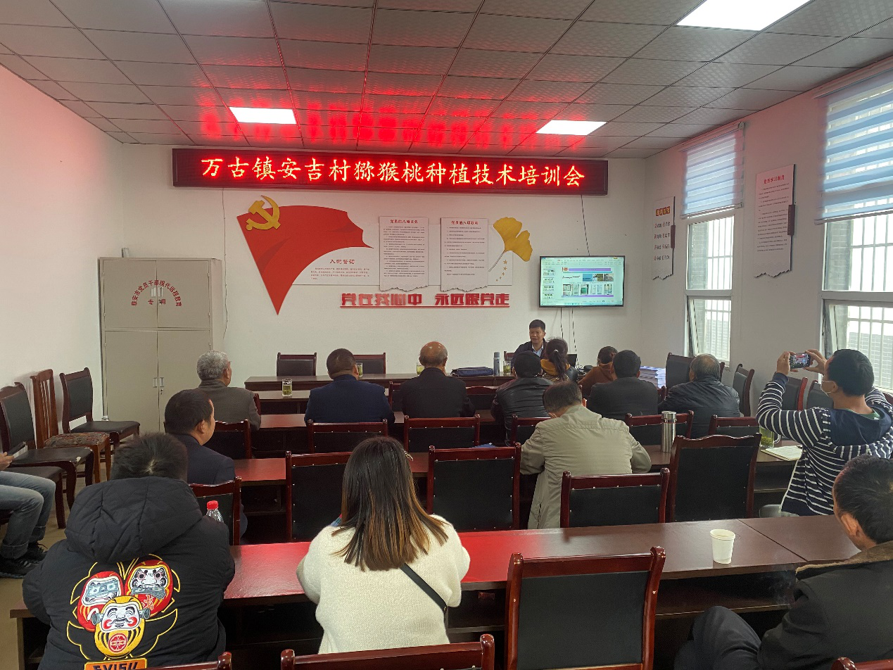 屋上春鸠鸣,村边杏花白。又是一年春耕时节,雅安市名山区万古镇安吉村的千亩猕猴桃已经吐露新叶,白色的花蕾含苞待放。正值猕猴桃春季管理的关键时期,永利yl23411集团官网农学院龚国淑教授、张勇教授,四川省农科院园艺所副研究员涂美艳博士应邀来到这里,为安吉村50余名猕猴桃种植专家团、种植大户、猕猴桃种植脱贫户进行猕猴桃病虫害防治、标准化种植及日常田间管理技术培训。