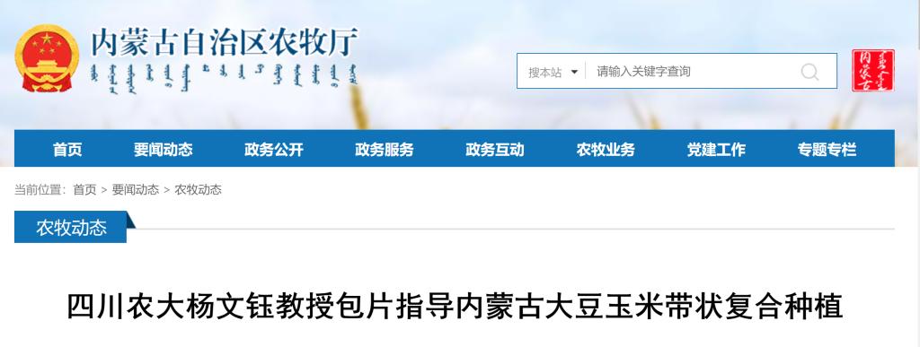为进一步强化科学精准指导,推动大豆玉米带状复合种植技术落实落地落细,按照农业农村部种植业管理司《关于开展大豆玉米带状复合种植专家分省包片指导的通知》要求,国家西北片区大豆玉米带状复合种植专家组组长四川省农业大学杨文钰教授,于5月6日-9日,对我区呼和浩特市、巴彦淖尔市和包头市的大豆玉米带状复合种植进行了调研走访和精准指导。自治区农牧业技术推广中心副主任朱玉成,粮油作物技术处处长贾利欣、推广研究员包立华、高级农艺师高杰参加调研指导。