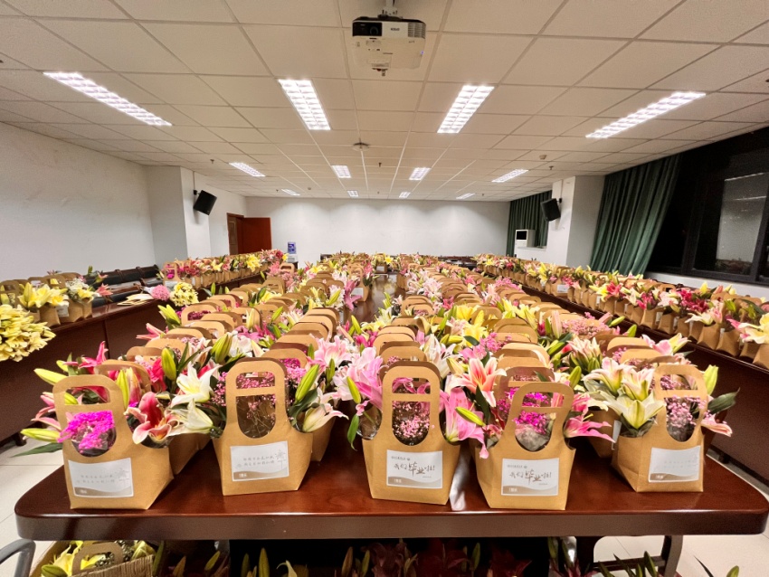 与此同时,人手一份的百合花束和彩色小麦也纷纷受到同学们的好评。“好香,好青春的感觉!”毕业生王鑫瑶回忆到,当她走进毕业典礼会场时就闻到一股百合花香,“很惊喜!没想到每个人竟然都有一束百合花。”据了解,百合花是由四川膳乐科技有限公司提供给毕业生们的礼物,并寄语同学们:“恰闻百合花如盛,期至当归程似锦”。除此之外,为了保证鲜花的美观和新鲜,负责农学院学生工作的老师和同学们在毕业典礼前一晚,一直工作到了晚上十点多。