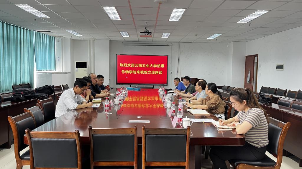 7月4日下午,云南农业大学热带作物学院院长杨学虎、副院长唐然一行4人来我院进行座谈交流。学院主要领导及相关系室负责人参加座谈。