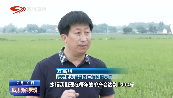 成都市大邑县安仁镇种粮大户 万富旭:水稻我们现在每年的单产会达到1400斤,每亩会赚到400到500块钱。到今年2022年,我们为整个大邑县周边的种粮大户和其他合作社育秧15000亩。
