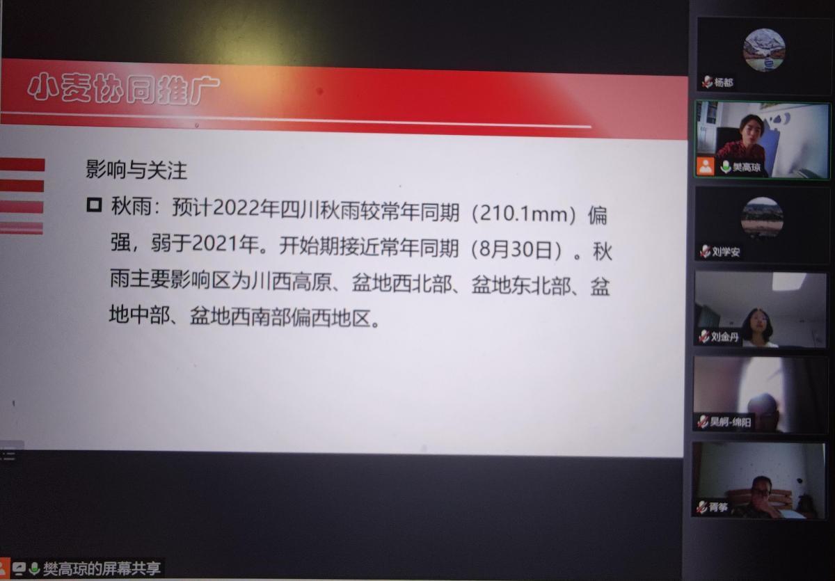 在进行网上会商时,2022年四川农业重大技术小麦协同推广计划技术首席、永利yl23411集团官网教授樊高琼向大家表示,尽管暂时无法到田间工作,但利用网络提前做好准备,是我省小麦专家在异常天气日益频繁的背景下,就四川小麦产业如何为建设更高水平“天府粮仓”助力的一次有益探讨。