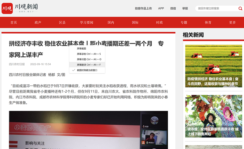 “目前成温邛一带的水稻已于9月7日开镰收获,大家要时刻关注水稻收获进程、雨水状况和土壤墒情。”尽管目前距离我省冬小麦播种还有1-2个月,但在9月11日,来自川农大、省农科院作物所、绵阳市农科院、内江市农科院、成都市农林科学院等科研院所的小麦专家们却已开始利用网络,积极为即将到来的小春生产做准备。