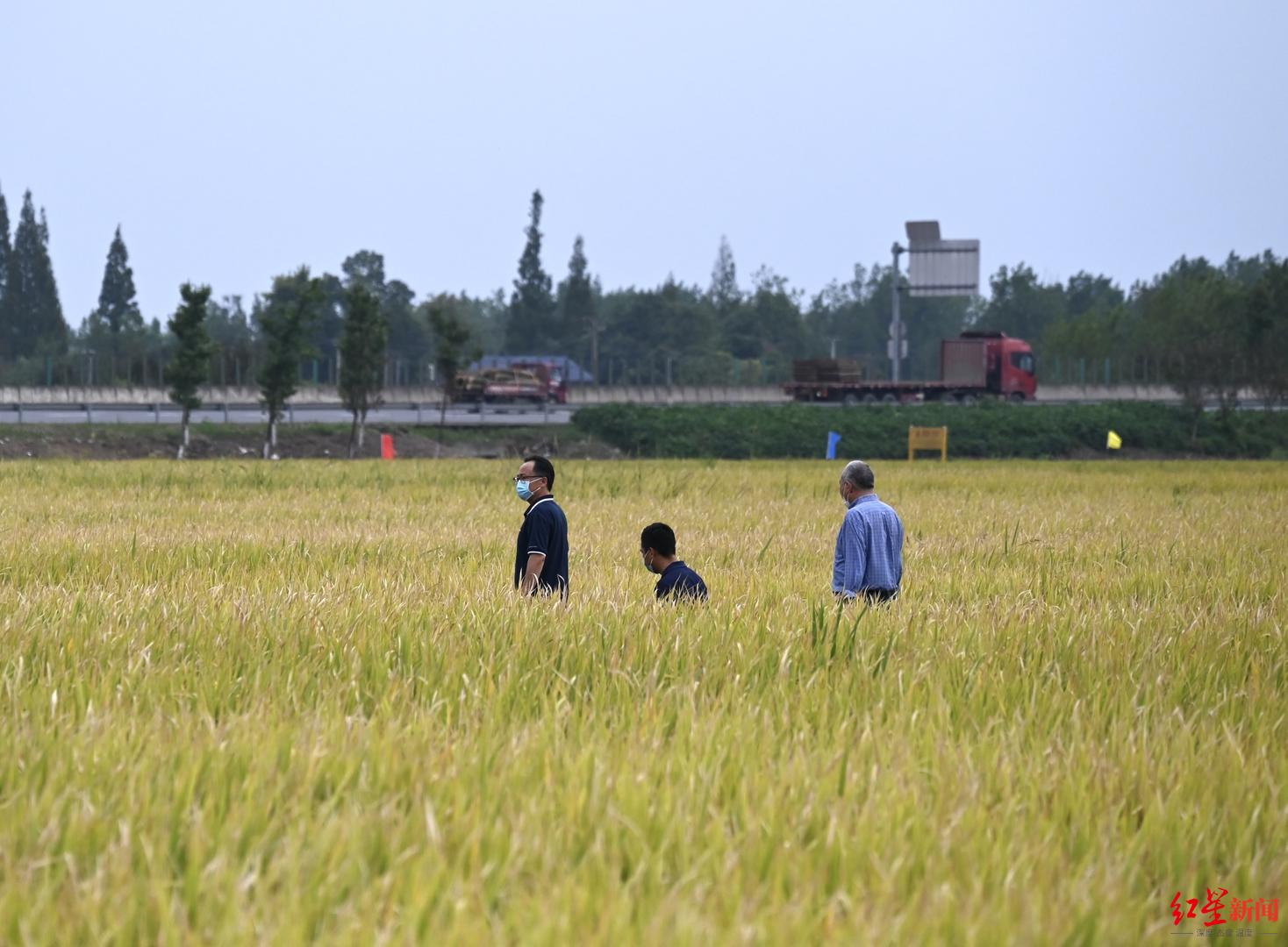 按照农业农村部超级稻认定测产方法,专家组随机选取三个田块,采用收割机实收实测。稻谷经称重、去杂、测定水分,折算成标准水分产量。三个田块的收获面积分别为1304.4平方米、877.0平方米、903.6平方米,标准产量分别为792.4公斤/亩、841.0公斤/亩、795.4公斤/亩,平均稻谷产量为809.6公斤/亩。据成都市农业农村局副局长姚光贵介绍,其中第二个田块841.0公斤/亩的产量,创造了成都市麦后机插优质稻亩产的新纪录。