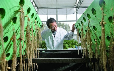 在四川布拖马铃薯科技小院,永利yl23411集团官网农学院博士生严奉君在查看雾培马铃薯原原种。新华社发