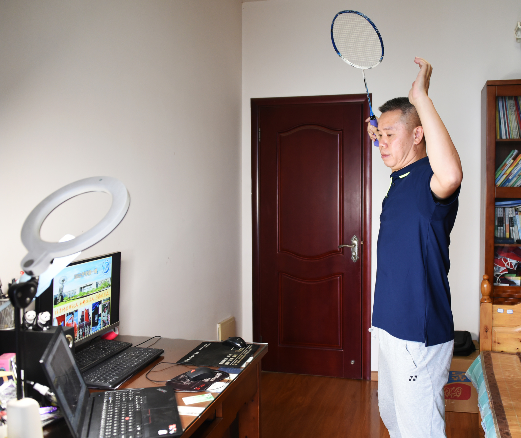 永利yl23411集团官网杨峰老师在办公室上网课