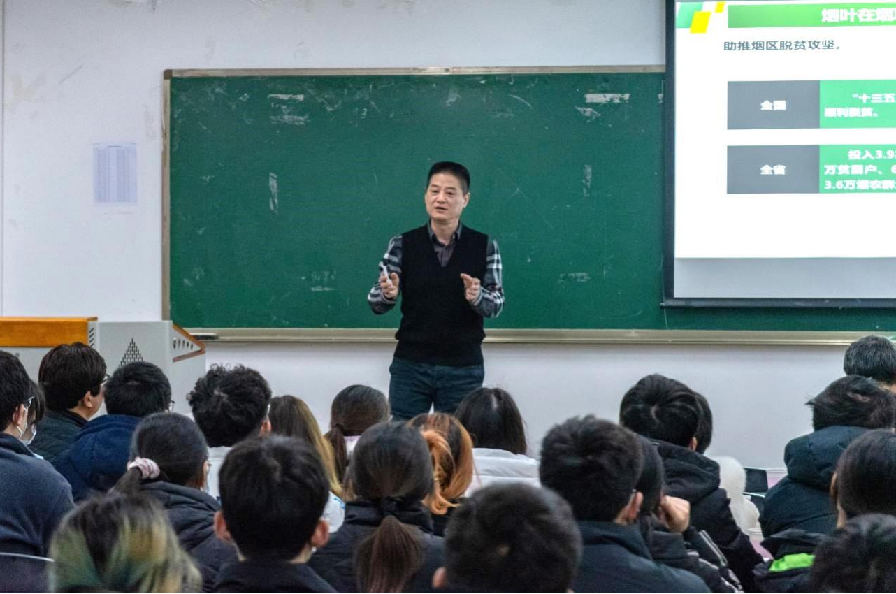 肖勇以“烟草生产经营与人才培养管理”为主题,介绍了怎样看待烟草行业、四川烟草发展现状、烟叶科技发展、下一步发展重点,并从理想与现实、机会与机遇出发阐述大学学生如何做好人生规划等方面进行了报告交流。