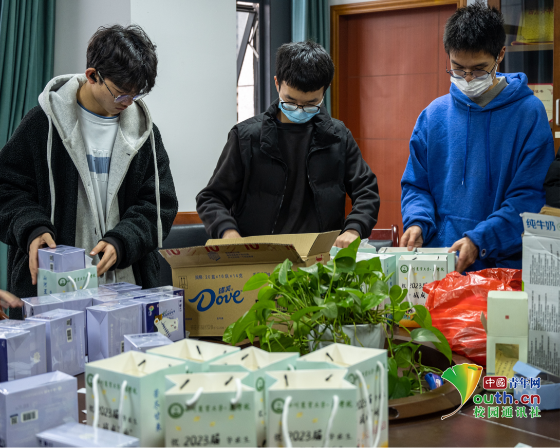 图为分装礼物现场。中国青年网通讯员 张卓冉 供图