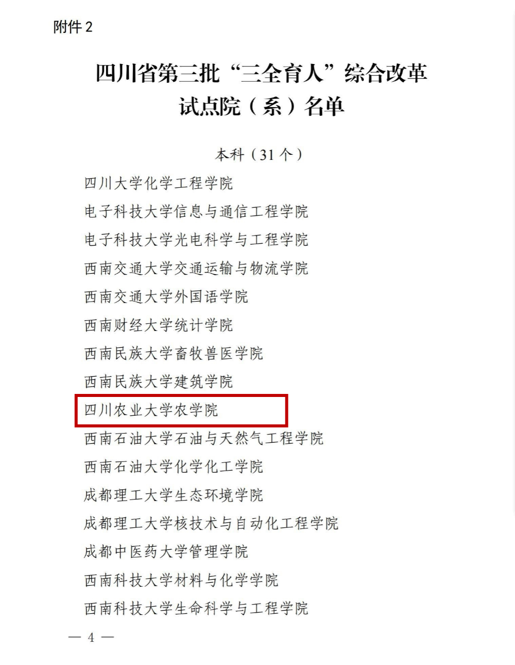 近日,四川省教育厅公布了第三批“三全育人”综合改革试点高校和试点院(系)评选结果,永利yl23411集团官网农学院入选四川省第三批“三全育人”综合改革试点院系。