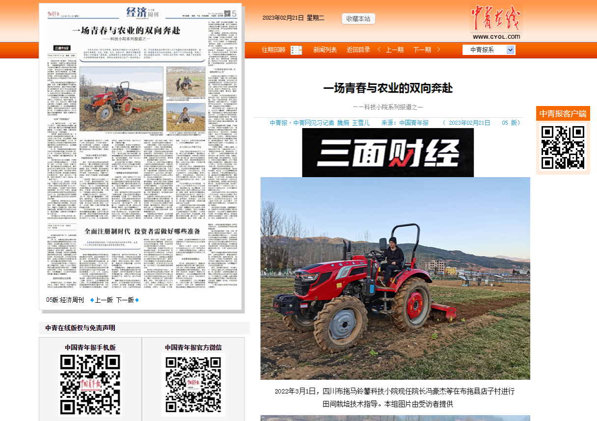 今年的中央一号文件明确,要实施乡村振兴人才支持计划,组织引导教育、卫生、科技、文化、社会工作、精神文明建设等领域人才到基层一线服务,支持培养本土急需的紧缺人才。在王西瑶等高校教师看来,将学生派驻到农业生产一线的科技小院,不仅是高校在加强乡村人才队伍建设方面的重要探索,更是一场青春与农业的双向奔赴。经历了十几年的发展,科技小院已发展到468家,“如同扎向乡村的一根针,戳破了农民固有的思维。”