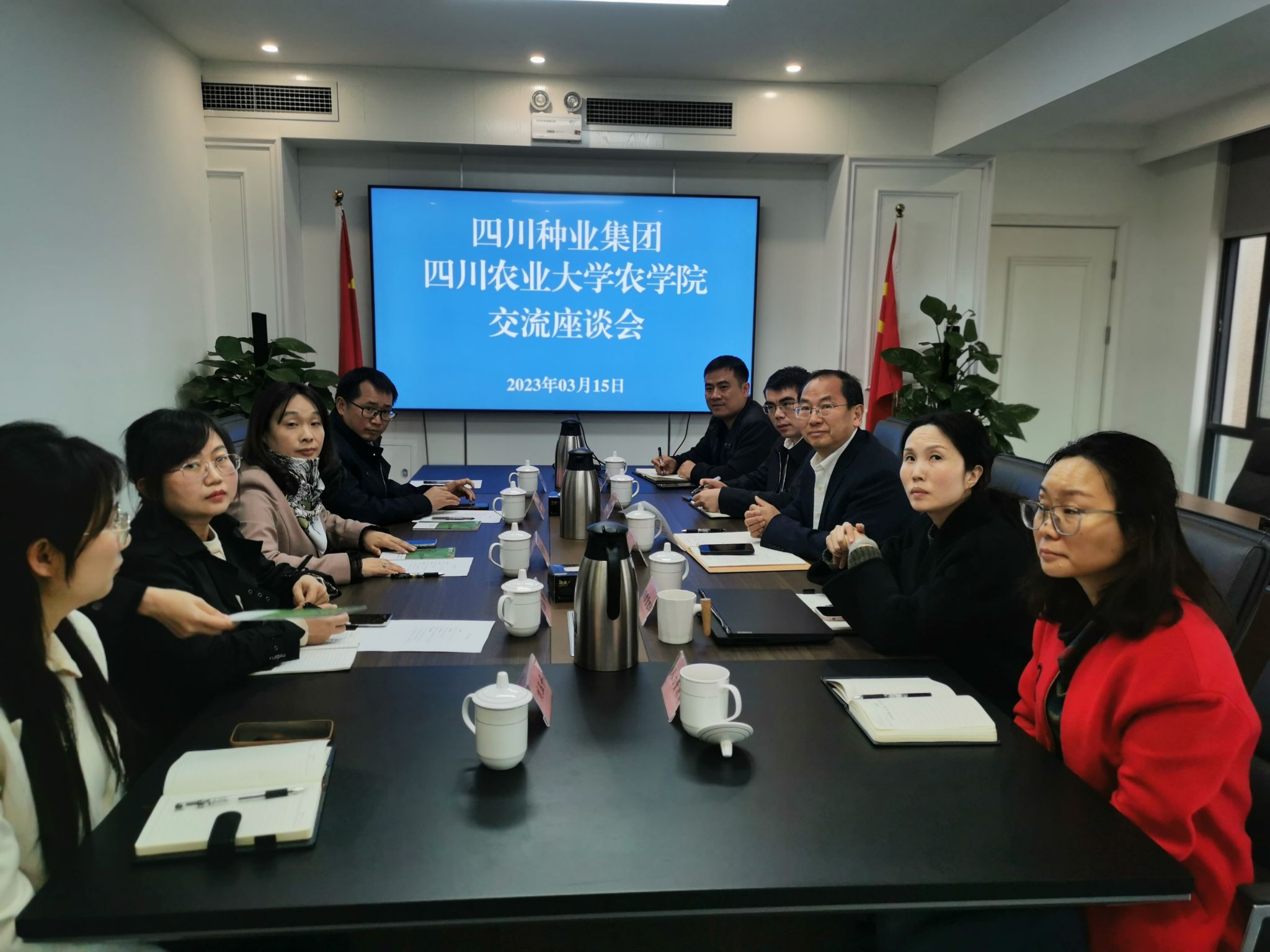3月15日上午,农学院党委书记黎明艳带领行政办主任向刚副教授、研究生辅导员郑亭博士、就业秘书贾佳一行四人到四川省现代种业发展集团开展“访企拓岗”走访座谈。四川省现代种业发展集团纪委书记、监事会主席黎明霞,经营管理部负责人刘炯,战略规划部负责人、科创中心副院长何从利,人力资源部负责人杨玉梅,行政管理部负责人赵纪东,科创中心院长助理刘玉平参加了座谈会。