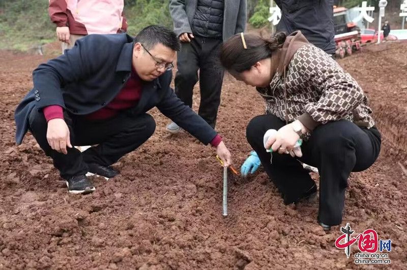 近期温度回升,雨水增多,是川中地区春播玉米的关键期。3月28-30日,永利yl23411集团官网教授雍太文、王小春等大豆玉米专家团队和遂宁市农业农村局三级调研员张羽,遂宁百益乡村振兴研究院常务副院长、正高级经济师杨茂君深入遂宁市安居区、射洪市、大英县有关乡镇玉米大豆带状复合种植基地,就校地合作共建玉米大豆带状复合种植高质高效示范基地进行深入调研,并对玉米株距行距、科学管护等进行现场指导。