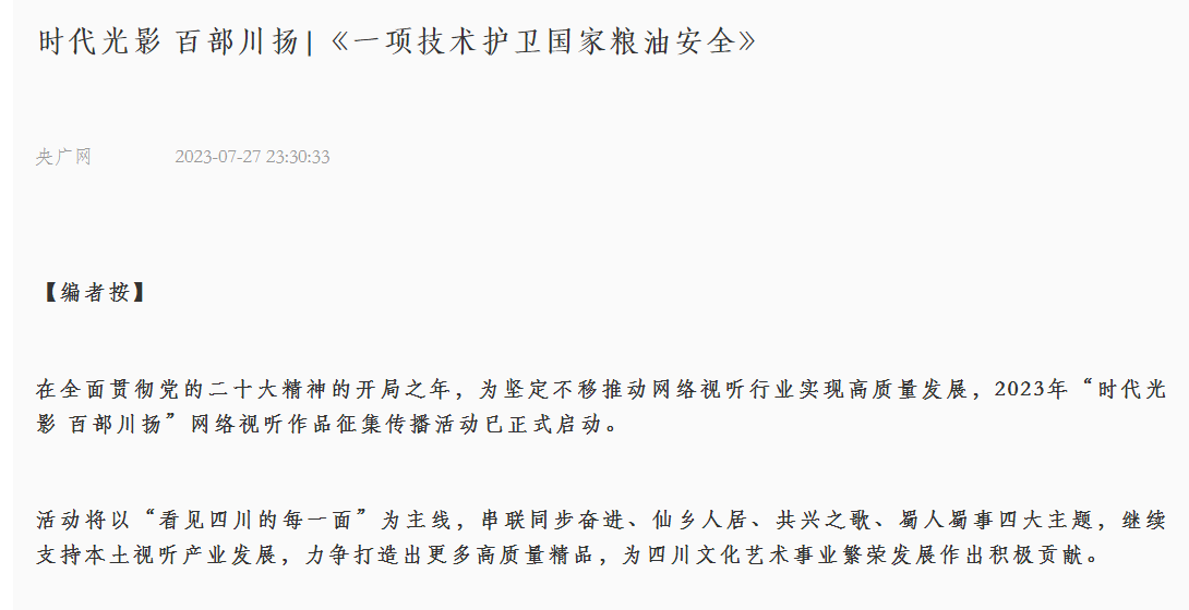 在全面贯彻党的二十大精神的开局之年,为坚定不移推动网络视听行业实现高质量发展,2023年“时代光影 百部川扬”网络视听作品征集传播活动已正式启动。