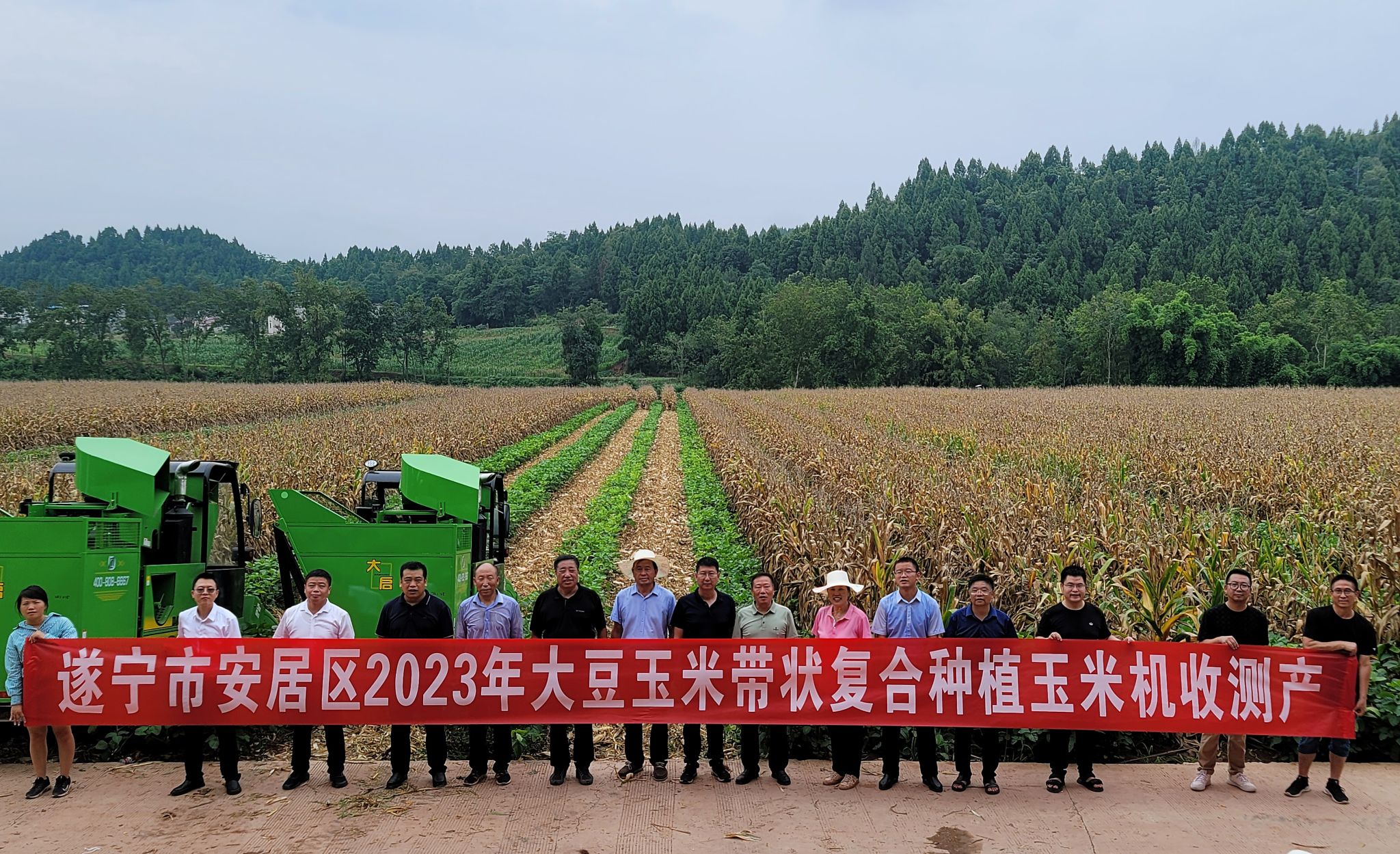 盛夏时节,玉米金黄,天府大地一派丰收景象。8月6日,全省大豆玉米带状复合种植现场观摩培训及玉米机收测产会在遂宁市安居区成功举办。来自全国农业技术推广服务中心、中国农业科学院、吉林省农业科学院、四川省农业科学院的专家以及全省15个地市的农技干部与种植大户、校地企业代表、媒体记者等百余人,观摩考察了由永利yl23411集团官网和省农业技术推广总站、安居区人民政府共建的“全国(遂宁市安居区)大豆玉米带状复合种植示范片”。全国农业技术推广服务中心科长蒋静怡、省农业农村厅种植业与农药肥料处处长刘代银、省农业科学院副院长刘永红出席开幕式,学校科技处副处长杜俊波、农学院副院长杨峰,安居区区委常委、宣传部部长谭久宏等领导和专家参加会议并致辞。