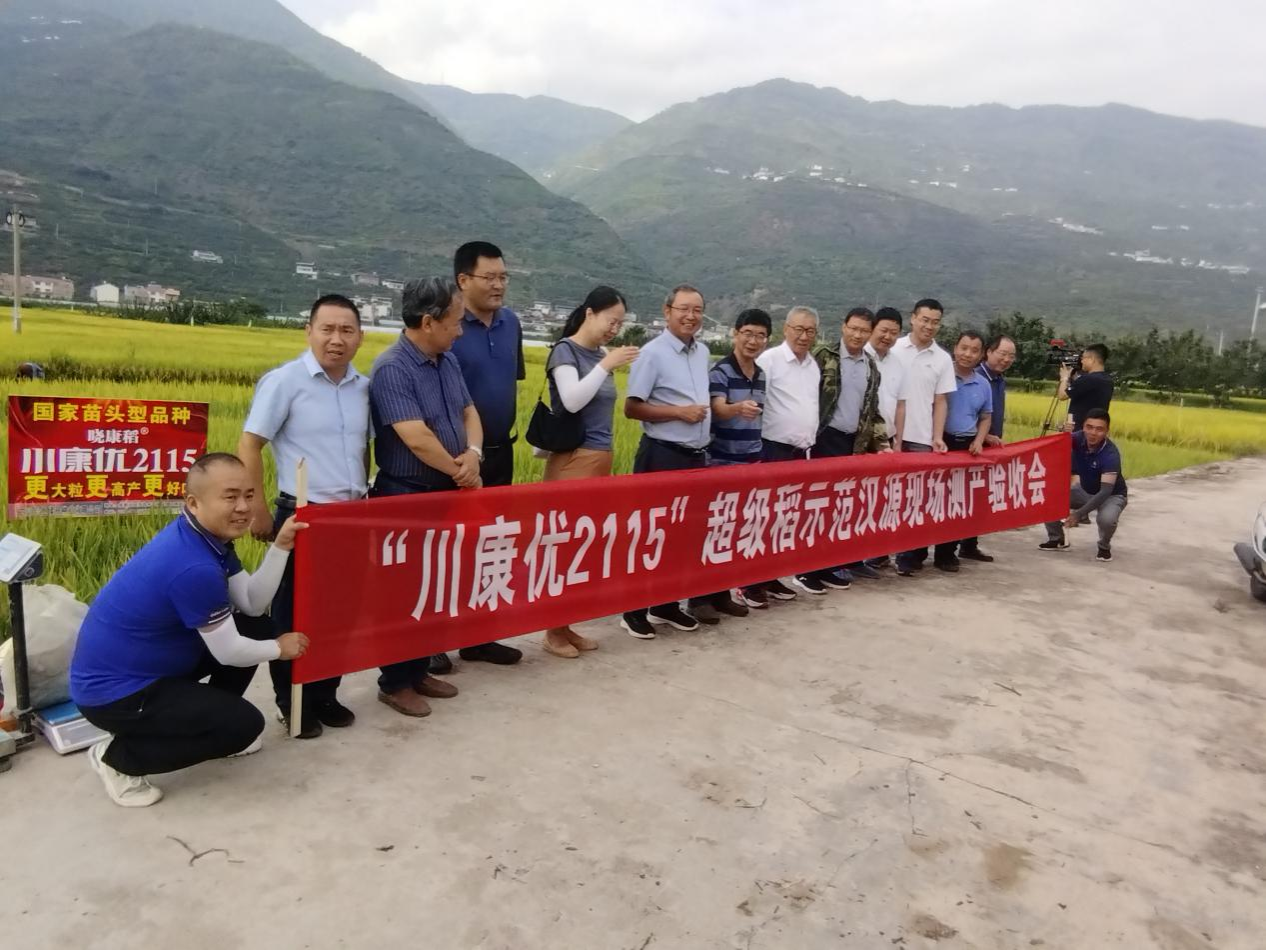 9月4日,受农业农村部委托,四川省农业农村厅组织中国水稻研究所、贵州省农作物技术推广总站以及省内从事水稻科研、管理、推广等多位专家,在雅安市汉源县九襄镇刘家村5组对永利yl23411集团官网黄富教授团队主持育成的杂交水稻新品种“川康优2115”百亩示范片进行了现场测产验收。