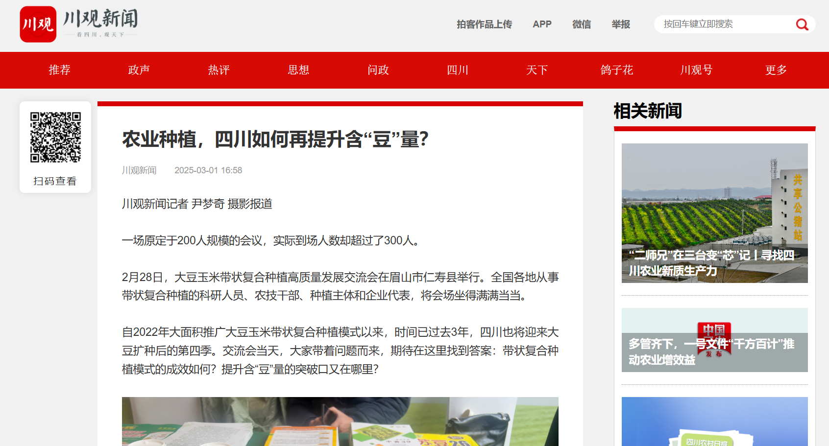 自2022年大面积推广大豆玉米带状复合种植模式以来,时间已过去3年,四川也将迎来大豆扩种后的第四季。交流会当天,大家带着问题而来,期待在这里找到答案:带状复合种植模式的成效如何?提升含“豆”量的突破口又在哪里?