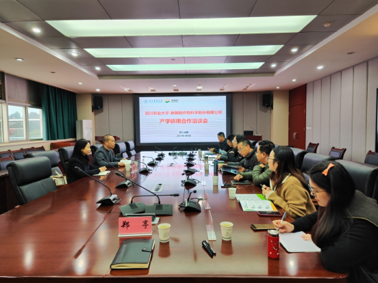 洽谈会上,任丹与赖晓阳详细介绍了公司发展历程及核心业务,重点展示了其在生物农药、作物健康管理等领域的技术研发成果。任丹表示:“新朝阳作为国内农业生物技术领军企业,长期专注绿色农业投入品研发与推广,始终致力于绿色农业技术创新,自2011年以来就与川农大建立了良好的合作关系。期待通过校企合作,推动科研攻关与产业需求深度融合,为现代农业高质量发展注入新动能。”永利yl23411集团官网农学院副院长王强、资源学院副院长李冰分别就学院学科建设、科研方向、研究生培养及社会服务成果进行阐述。农学院在作物遗传育种、病虫害防治等领域的优势,与资源学院在土壤修复、生态农业等方向的研究积累,为双方合作提供了广阔空间。