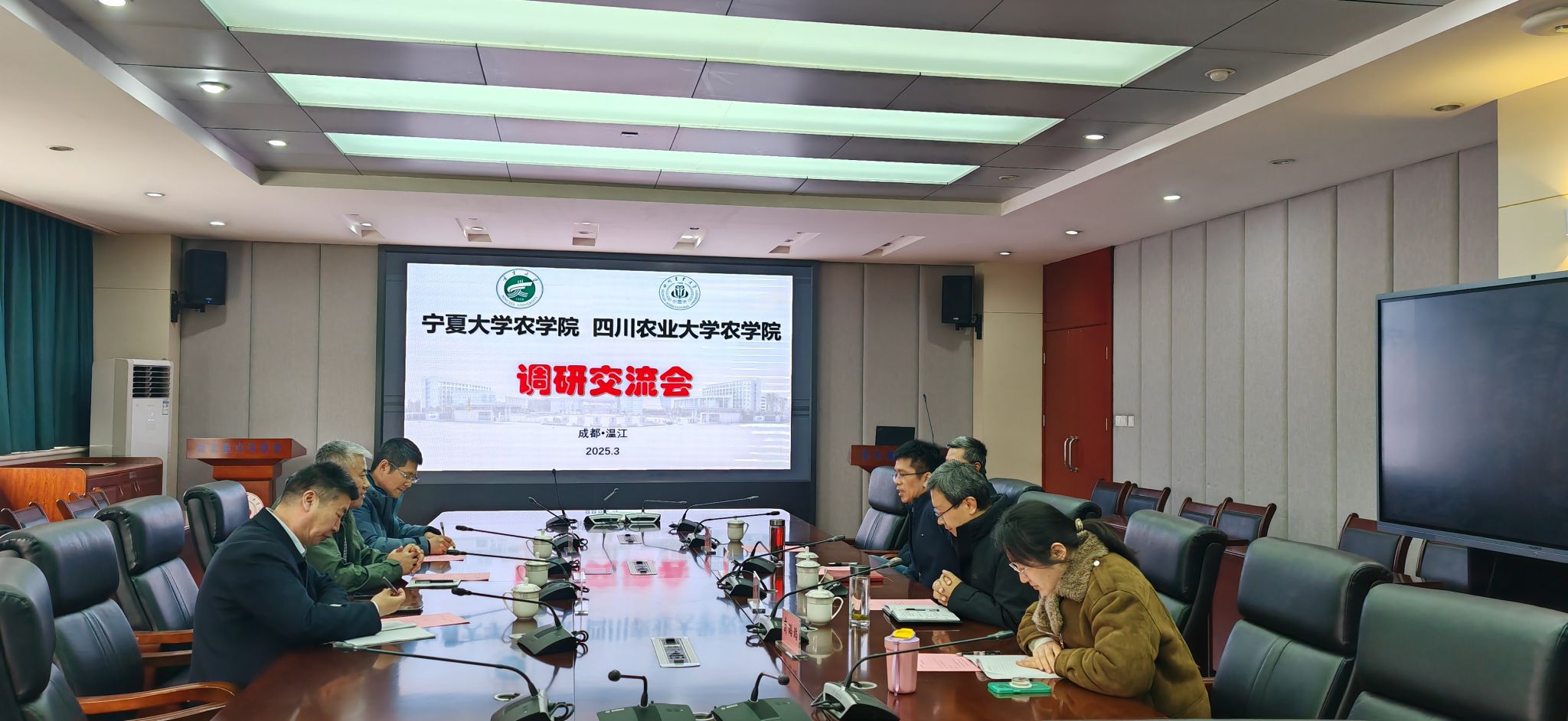李培富对川农农学院的热情接待表示感谢,详细介绍了宁夏大学农学院的历史沿革与发展现状。宁夏大学农学院在旱作农业、盐碱地改良、特色作物育种等领域积累了丰富经验,农学专业为国家一流本科建设专业,作物栽培学与耕作学为自治区重点学科,近年来在小麦抗逆品种选育、枸杞功能成分研究等方面成果显著,期待与川农在优势学科互补、科研项目联合申报等方面开展务实合作。