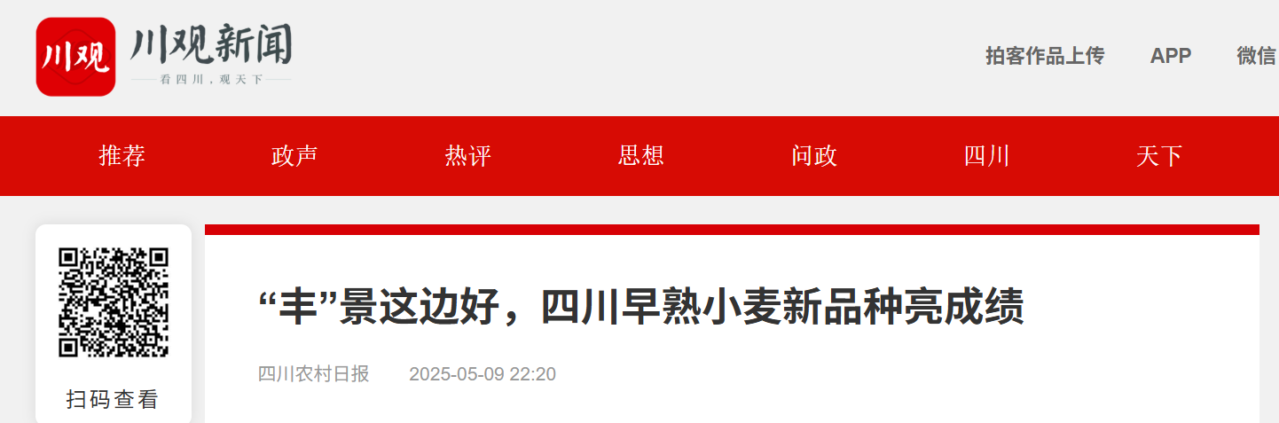据悉,作为四川成熟期最早的品种之一,“蜀麦1963”已经大范围推广。今年预计在全省推广种植50万亩左右,以成都平原为主,并辐射到川东、川南、川北丘陵地区。