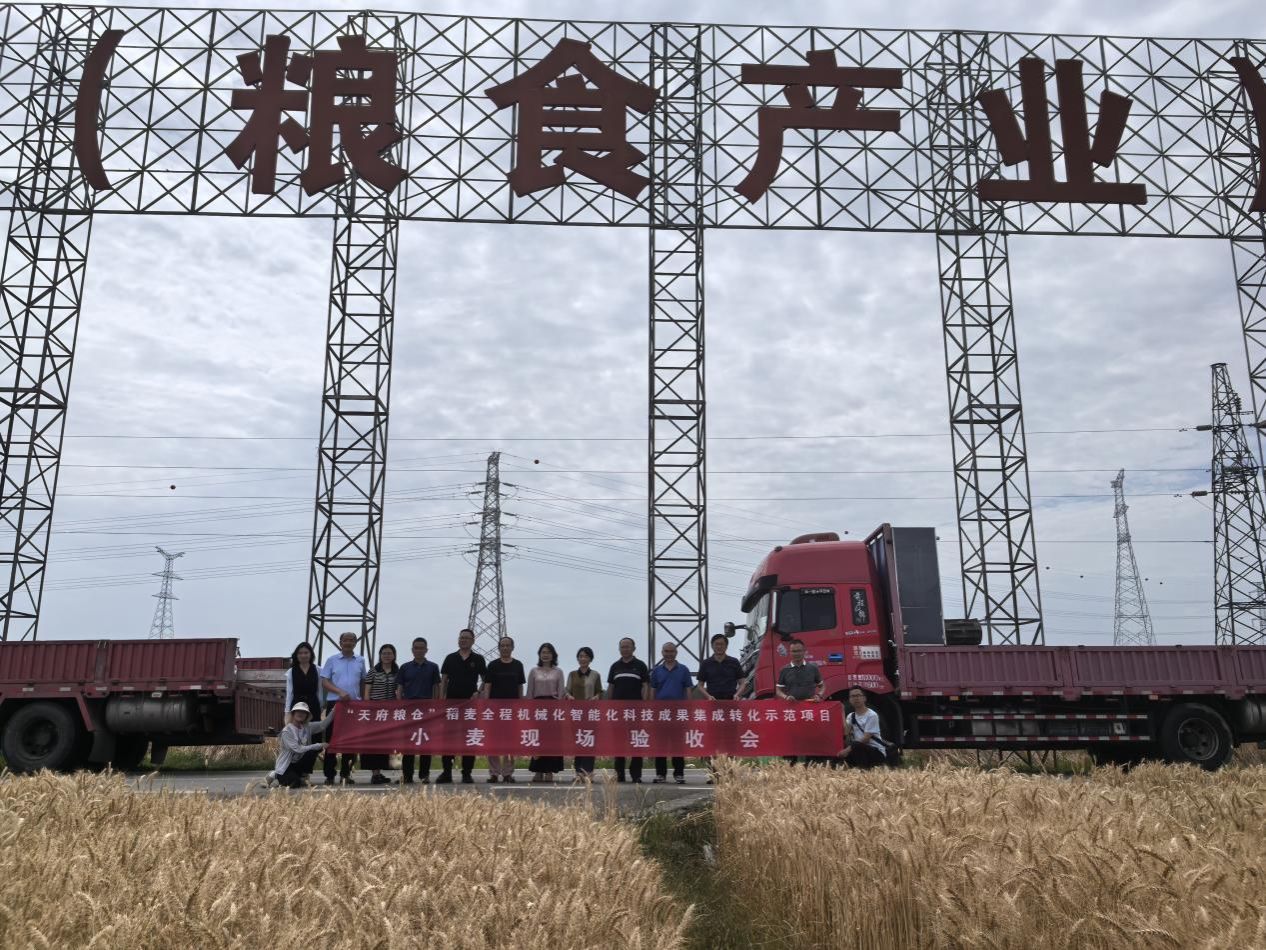 在四川成都平原的广袤田野上,一场由科技赋能的“农业革命”正结出累累硕果。2025年5月15日,由成都都市现代农业产业技术研究院有限公司牵头,联合永利yl23411集团官网等单位实施的四川省科技计划项目《“天府粮仓”稻麦全程机械化智能化科技成果集成转化示范项目》,邀请相关专家对在大邑县安仁镇现代农业(粮食产业)园区建立的人工智能赋能粮食生产示范基地及小麦百亩示范片进行现场考察和实打测产验收。结果显示,103.01亩验收平均亩产达604.3公斤,其中最高田块亩产突破650.2公斤,创下区域新高。这一成绩的取得,标志着项目构建的“五新六化八标准”科技成果集成转化模式在保障粮食安全、推动农业现代化进程中迈出关键一步。