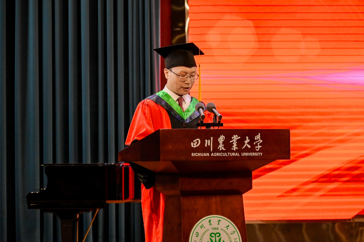 2025届研究生代表吴超回顾了在川农本硕七年的求学路,展望了续读本院博士的未来,秉承“追求真理、造福社会、自强不息”的校训,期待与同窗在乡村振兴的征程中,再聚奋进之路。