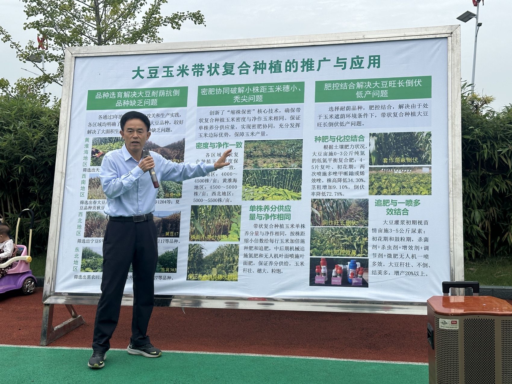 夏末初秋,恰逢四川夏播大豆和带状套作大豆产量形成关键时间节点,当天,四川省带状复合种植大豆绿色高效生产现场观摩暨单产提升技术培训会在仁寿召开,科学技术部、农业农村部、四川省农业农村厅、国家大豆产业技术体系相关岗站专家和农技干部,为百余位种植大户、企业代表现场授课。