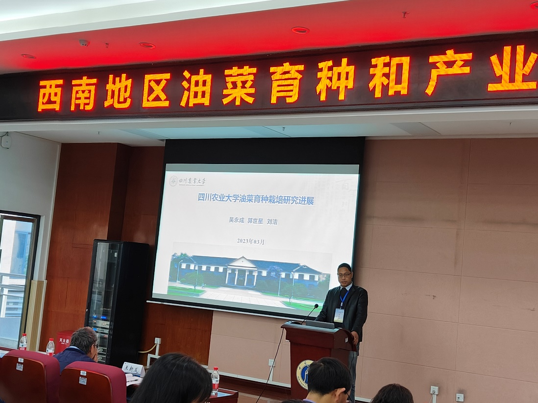 会上,吴永成教授代表永利yl23411集团官网油菜研究团队做了“永利yl23411集团官网油菜育种栽培研究进展”主题报告。该报告主要介绍了永利yl23411集团官网油菜研究团队的历史、人员组成及近几年在油菜育种和栽培科研上的主要成果。同时,来自重庆、四川、贵州、云南、陕西的多位油菜领域代表专家围绕油菜育种、产业发展和油菜研究新技术资源共享等方面展开了专题讨论。