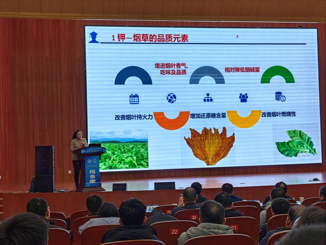 我院李立芹副教授做了题为“烟草钾吸收的分子调控”的学术报告,系统总结了课题组从事烟草钾营养分子机制研究的成果。会议期间,参会代表们就烟草智慧农业与智能烘烤、生态环境与特色烟叶、生物育种、烟草化学与数智调香、卷烟智能制造等领域的新理论、新技术、新成果进行了学术交流。通过参加此次大会,我院参会师生进一步拓宽了学术视野,为今后深入开展烟草生物育种研究奠定了基础。