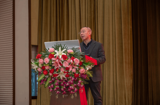 图为张江文对国光农化技术创新发展进行报告