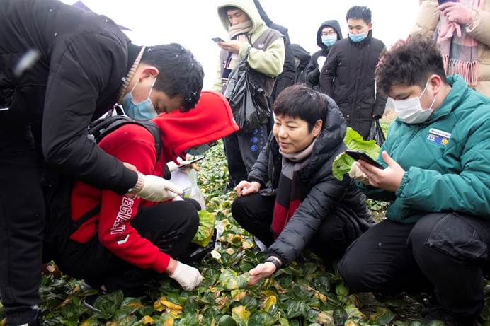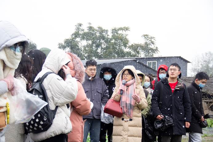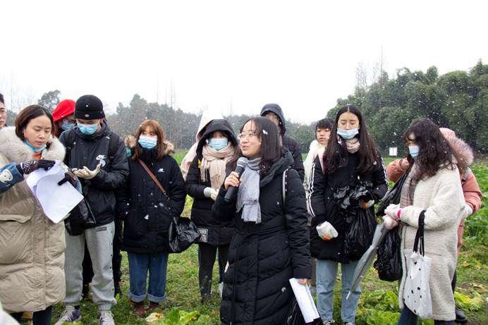 1月7日,成都迎来了2021年的第一场雪。农学院植物保护专业2018级的50余名同学在龚国淑教授、蒋素容、王海建、李沛利、尚静、常小丽、邱小燕等专业老师带领下,伴着风雪来到青浦园基地,开展了一场别开生面的课程教学实习。