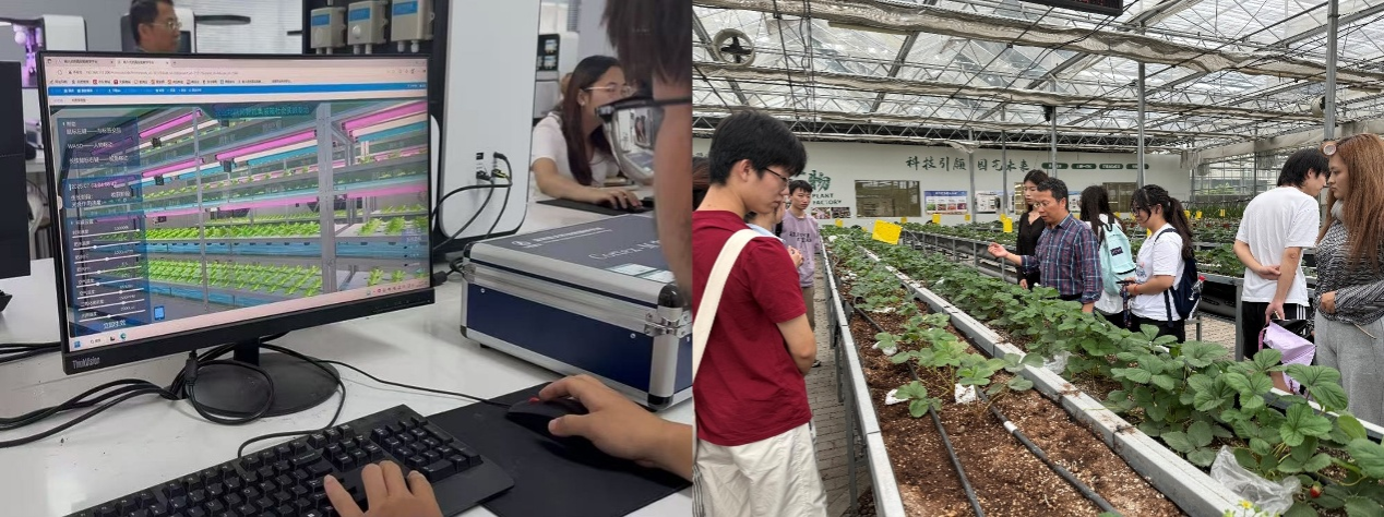 最后,同学们走进智慧农业实践基地,深入体验了在实际生产中传感器数据的校准与收集、通风、遮阳、水肥一体化等设备的协同调控,以及针对不同作物和生长需求如何灵活调整环境参数等环节。