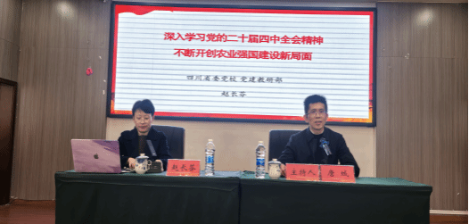 当日下午,全体党员认真听取了四川省委党校党建教研部副主任赵长芬教授所作的专题党课。赵教授以“深入学习党的二十届四中全会精神,不断开创农业强国建设新局面”为主题,系统阐释了党的建设新的伟大工程的深刻内涵,结合国家“十四五”规划中期目标与农业强国建设路径,激励大家在新征程上强化使命担当。党课由唐城主持。