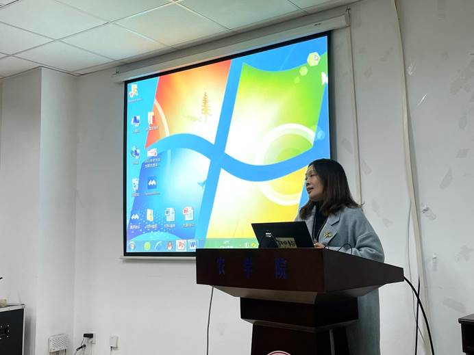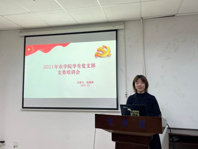 图为农学院团委老师沈丽淘进行支委培训