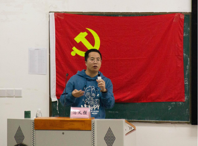 开班第一课由马克思主义学院讲师冯义强做入党基础知识讲解。讲课内容分为五个部分,包括中国共产党的性质、宗旨、组织原则、党员条件和入党程序。冯义强重点讲解了党的性质、党的宗旨和组织原则,着重阐释了“中国共产党是工人阶级政党,为什么还代表中国人民和中华民族的先锋队?”及“为什么中国共产党是中国特色社会的领导核心?”两个问题。冯义强希望入党积极分子们要牢记三个代表重要思想,熟记《中国共产党章程》。熟记党的基础知识是入党积极分子发展成为中共党员的前提与基础,是党课学习的基本要求。“三个代表重要思想是中国共产党的立党之本、执政之基、力量之源,只有掌握三个代表重要思想的具体内涵,才能真正地了解党,真诚地支持党、拥护党”冯义强说道。