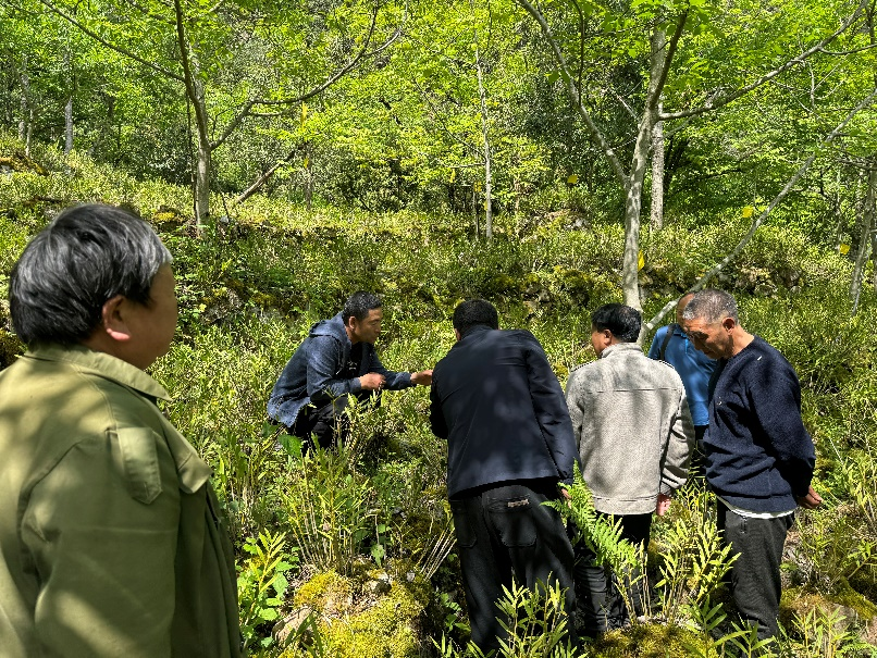 在石棉县农业农村局王春涛等相关同志的陪同下,刘帆师生一行前往丰乐乡高桥黄草专业合作社,就叠鞘石斛叶面肥的科学施肥进行指导,针对当地农户施肥不科学、不规范的问题,提出几点建议:第一,施肥要根据不同药用植物的需求和特性选择合适肥料类型,平衡施肥;第二,适时施肥,根据药用植物如苗期、花期、果期等生长关键时期进行合理施肥;第三,增加产量与改善品质相结合,根据植物需要调整施肥策略以优化产量和品质;第四,保护生态环境,使用肥料时要考虑环境保护,减少对生态系统的负面影响。同时,刘帆还为农户带来叠鞘石斛叶面肥供农户免费使用,并亲自示范叶面肥稀释方法和施肥方式。