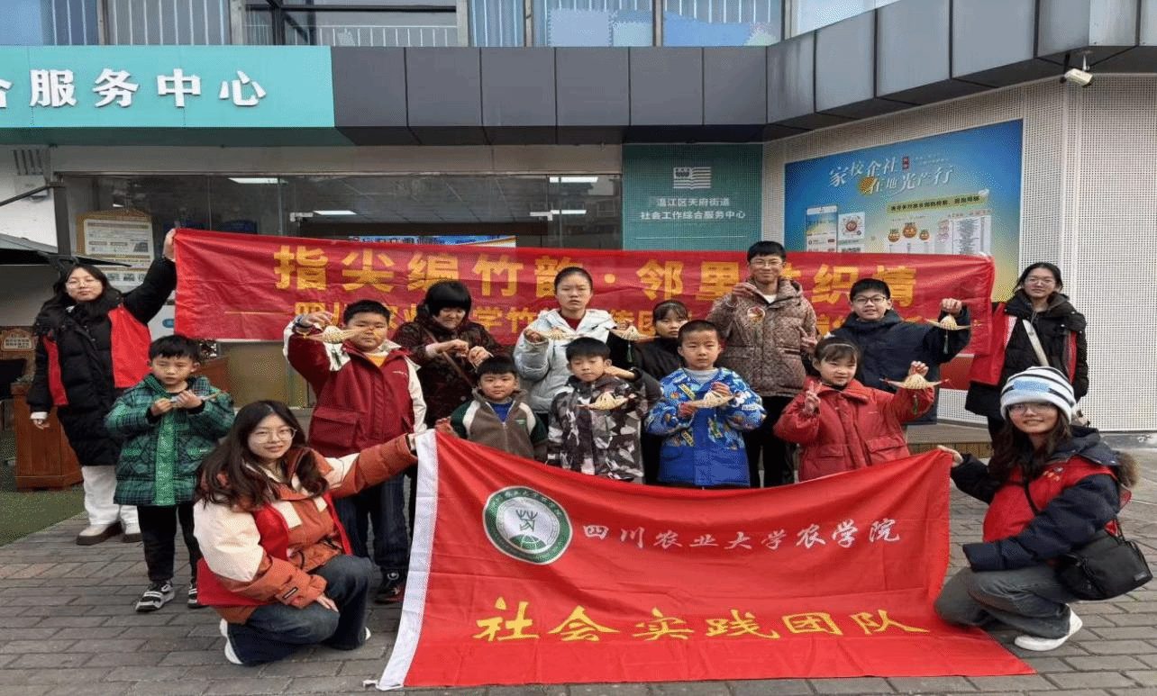 为积极响应国家“非遗在社区”工作号召,传承弘扬中华优秀传统文化,2026年寒假期间,永利yl23411集团官网农学院“竹韵新传”社会实践团队先后奔赴成都市温江区天府街道、宜宾市南溪区凤翔社区“童伴之家”,开展了以“指尖编竹韵·邻里共织情”为主题的道明竹编体验活动。团队将非遗技艺送入社区,让传统文化在孩童指尖焕发新生。