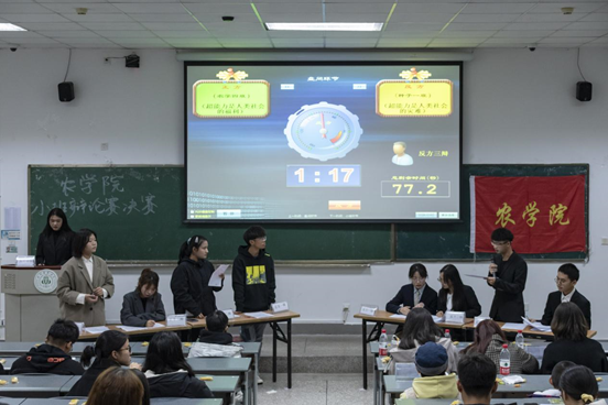 12月5日晚,第十一届“博论杯”新生小班辩论赛决赛在4A209举行。农学院团委刘昱麟老师、学院各部门主干以及各学院辩论队的代表受邀出席。比赛由辩论队代表汪雨濛、谢慧琳、左佳担任评委。