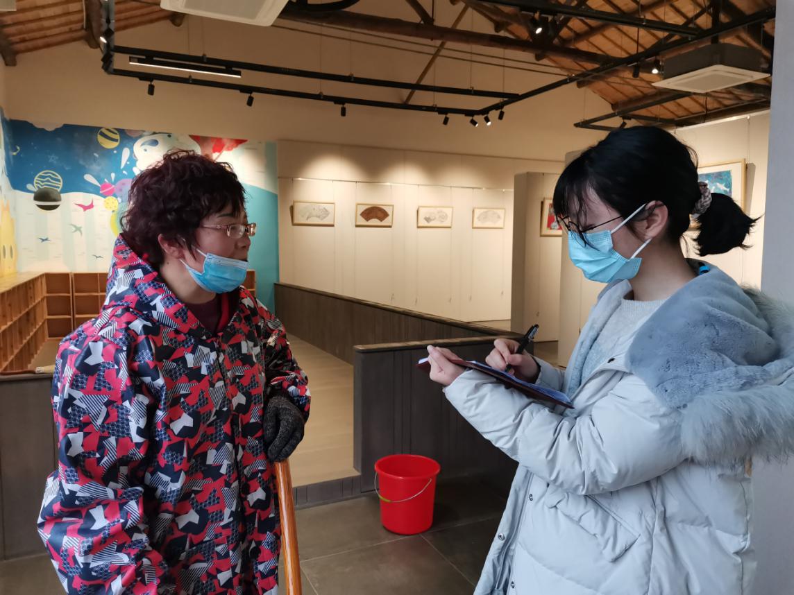 小组成员在浙江省义乌市缸窑村展览馆内采访馆内工作人员