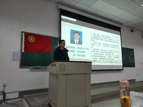 团日活动伊始,优秀学生标兵、农发2017级苟扬为支部成员分享了他的成长之路,他首先为支部成员讲解了学习生活小贴士,希望师弟师妹们早日明确目标。“追寻成功的方法有很多,但是唯独只有努力,才能真正的成功”苟扬说道,他用一段话与同学们共勉“大学未上,定义由你;大学已上,意义由你;大学已完,评价由你;大学未完,改变由你!愿仰望星空,脚踏实地;祝前程似锦,归来仍是少年。”