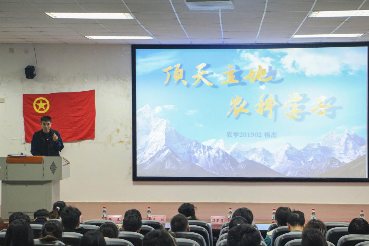 学习先进模范,争当优秀青年。在第三个环节,由“感恩中国”奖学金获得者杨杰为支部成员分享了他的创新创业大赛经历。他表示,无论是选择投身科研还是选择尝试各种创新创业实训项目,最终目的都是将专业知识和科学技术转化到实际生产应用中,为中国农业发展做贡献。这也提醒着同学们在学习的过程中需要保持脚踏实地、勤勤恳恳的态度,如此,才能将理论与实践结合,完成从理论到实践的飞跃。
