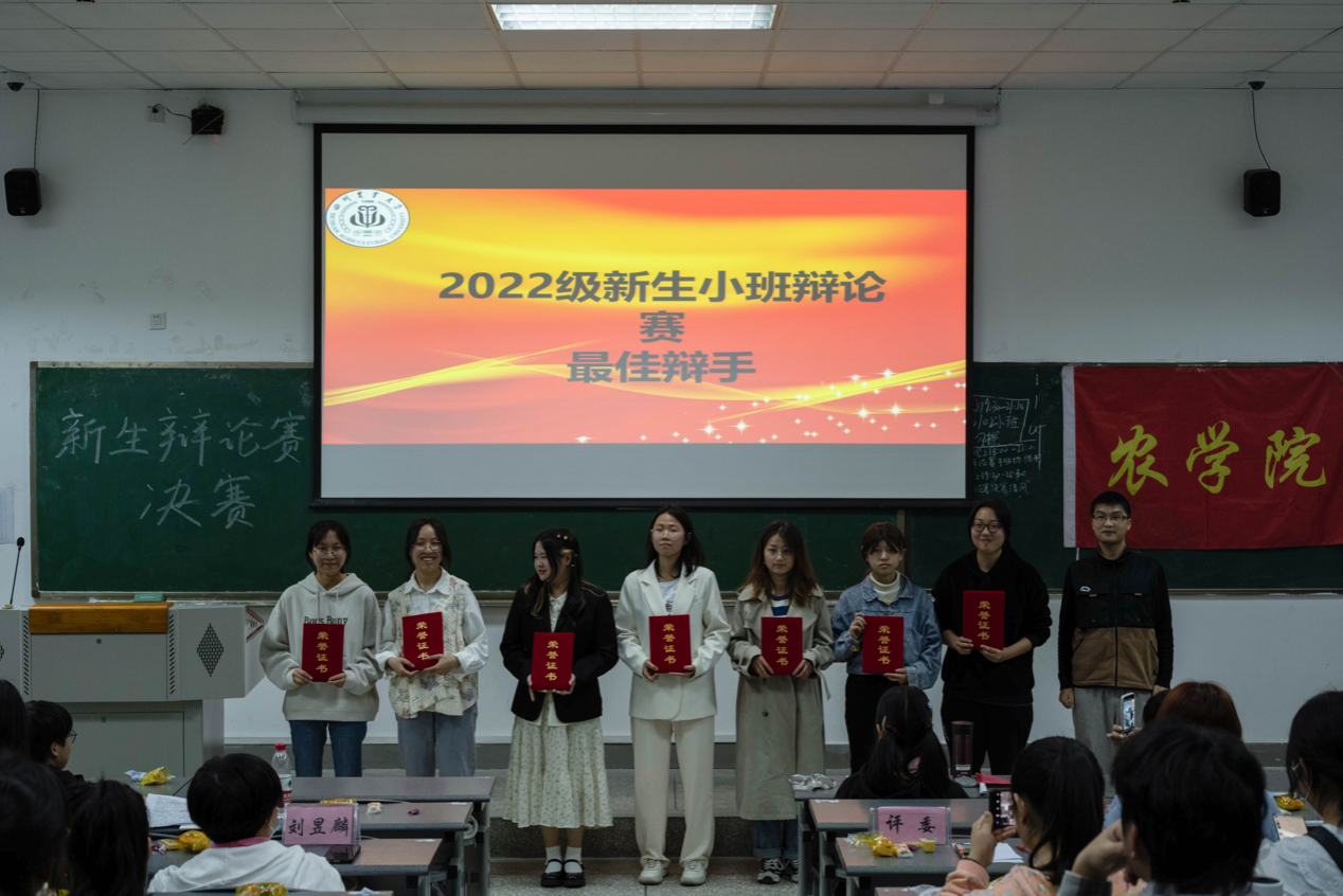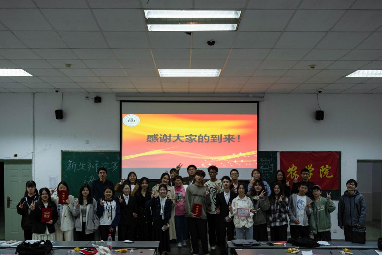 图为农学院辩论队队长与最佳辩手们的合照
