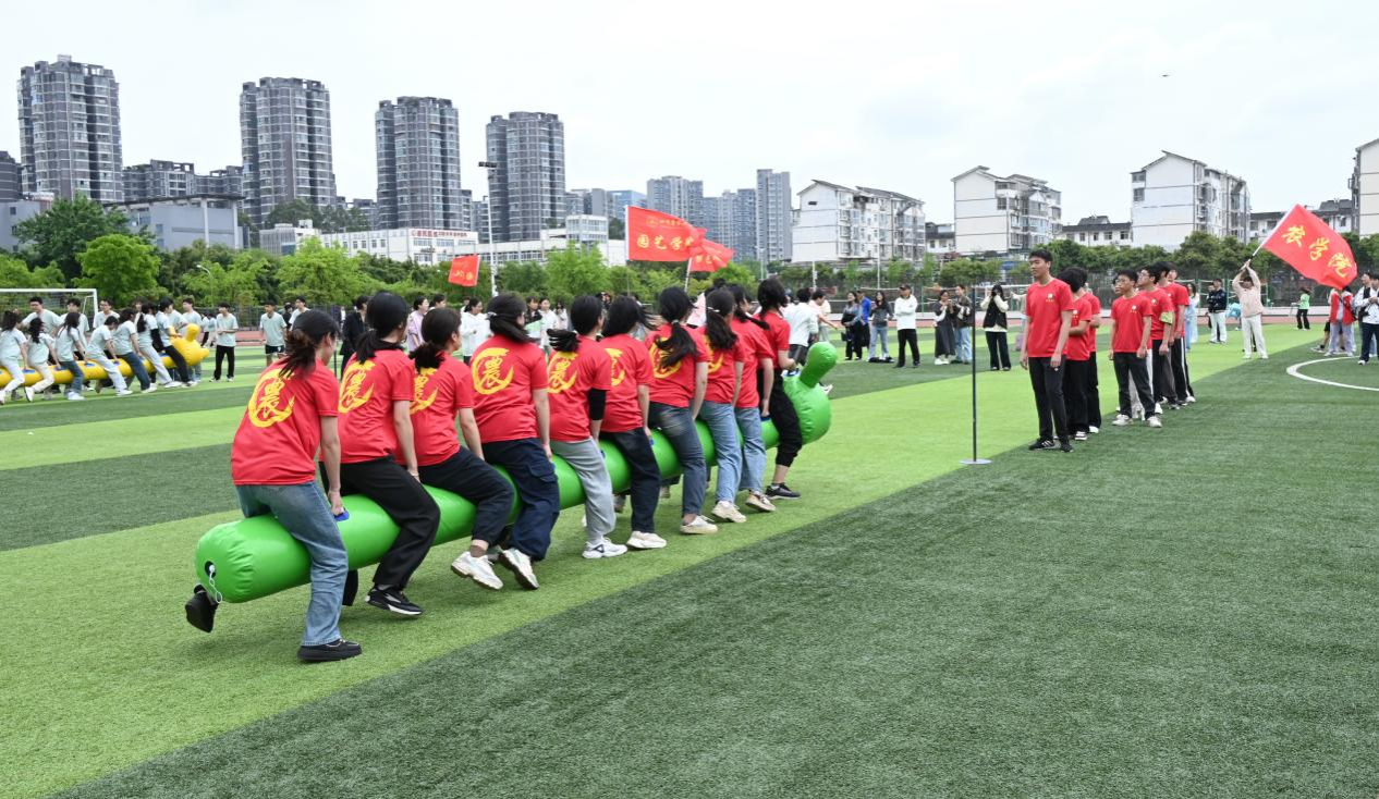 图为农学院毛毛虫竞速赛比赛场景