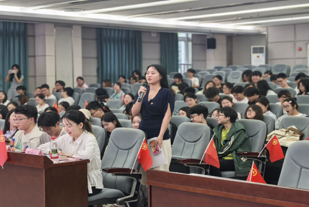 活动伊始,全体同学起立齐唱团歌。歌声激昂,旋律振奋,这不仅是青春的誓言,更是团员青年砥砺前行的号角。随后,校青马班第十一期学员唐鸿林以“青年风采与时代使命”为主题,深入解读习近平总书记给谢依特小学戍边支教西部计划志愿者的回信精神;同时,西部计划工作者们以视频的方式,结合自己的亲身经历,真诚而深刻地分享了他们的支教收获与感悟,激励团员青年用青春丈量祖国大地,用奉献诠释家国情怀。