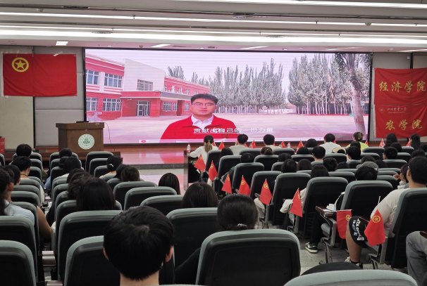 为深入学习宣传贯彻习近平总书记给谢依特小学戍边支教西部计划志愿者的回信精神,引导青年学子坚定理想信念、锤炼实践能力,以实际行动践行时代使命与担当。5月27日经济学院与农学院联合举办“青春奋斗有我,建功挺膺担当”示范性班团活动。经济学院党委办公室副主任、团委副书记朱玉老师、农学院党委办公室副主任兼团委副书记沈丽淘老师、经济学院研究生兼职辅导员王梦晗老师、经济学院学生团委兼职副书记伍轩雨、农学院学生会执行主席王奎、校青马班第十一期学员唐鸿林、五四红旗团支部标兵代表李婧瑶、科创乡村人才振兴调研团负责人郭果等嘉宾出席,与180余名团员和青年共赴这场青春盛会。