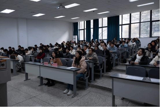 图为参会老师、部门主干、小班学生代表听取汇报