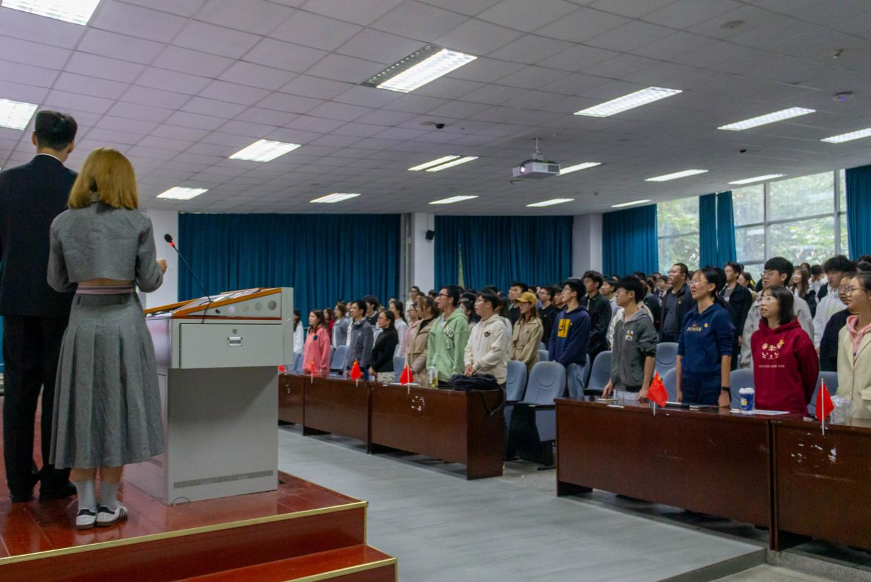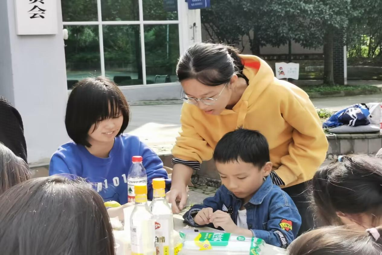 室外活动包括观看升旗仪式、举办读书沙龙、青年团员进社区三方面。10月16日7点,支部成员去往操场观看升旗仪式。“看着五星红旗一点点升起,我内心感慨万千,”智慧农业2201团支部书记施聪胤说道,“如今的美好生活是无数先辈的鲜血换来的,作为青年团员的我们应该牢记使命,砥砺前行。”随后,各支部自行举办读原理分享活动,支部成员以手抄报或者心得笔记的形式记录下来自己的所学所感。除了思想上的看齐,支部成员还在行动上向党组织靠拢。他们去到温江区公平街道分水村村民委员会协助开展蒜科普活动,把所学知识分享给当地小朋友。参与成员坚持理论学习与实践教育相结合,在服务人民中锤炼思想、锻炼才干。